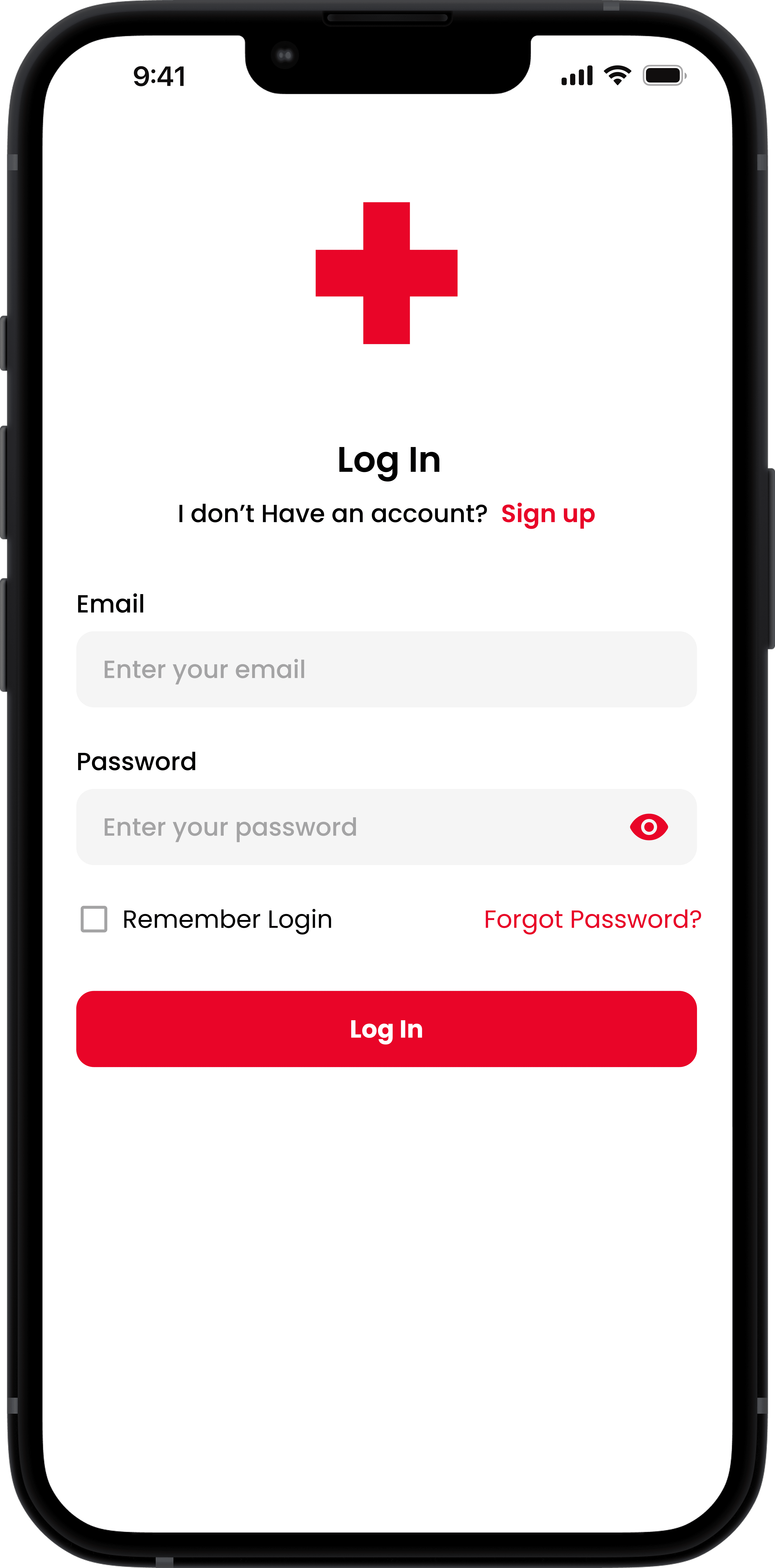 Kies bij het login scherm voor 'Sign up' om de onboarding flow te zien.