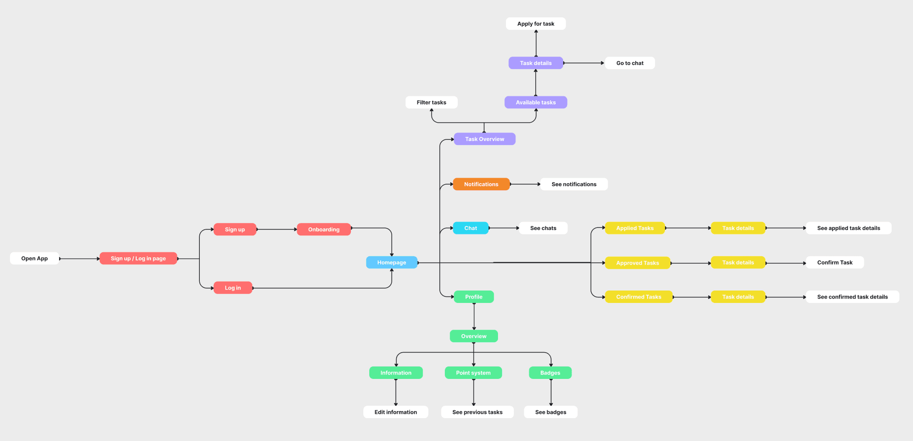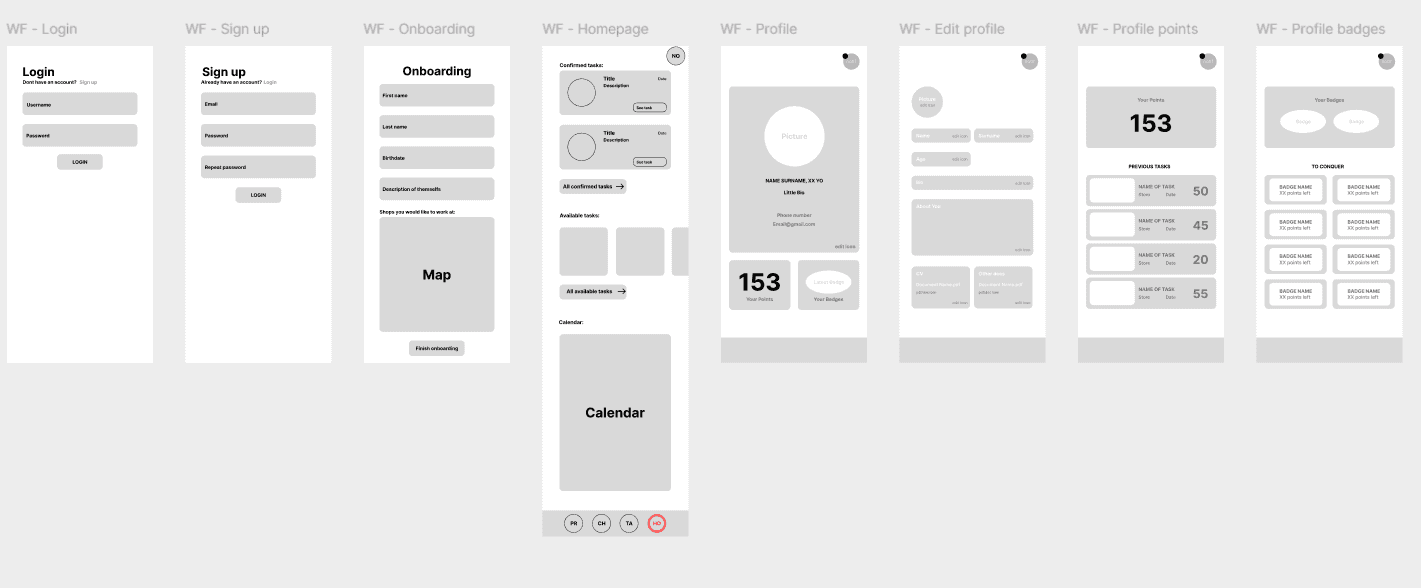 Inzichten die we kregen uit deskresearch en interviews zijn omgezet tot persona's en userstories. Ook werkte ik aan een userflow en wireframes om ideeën uit te schetsen en te presenteren.