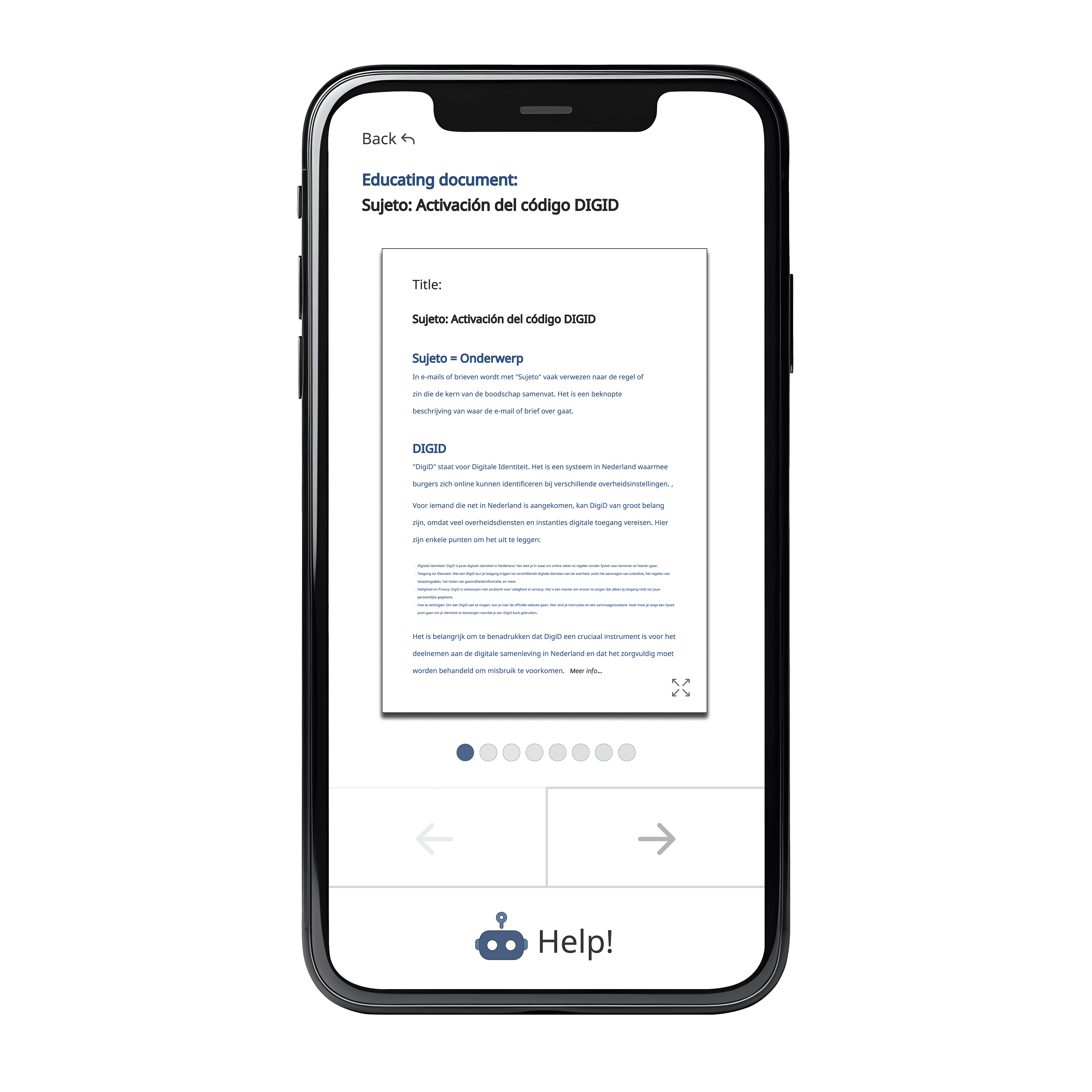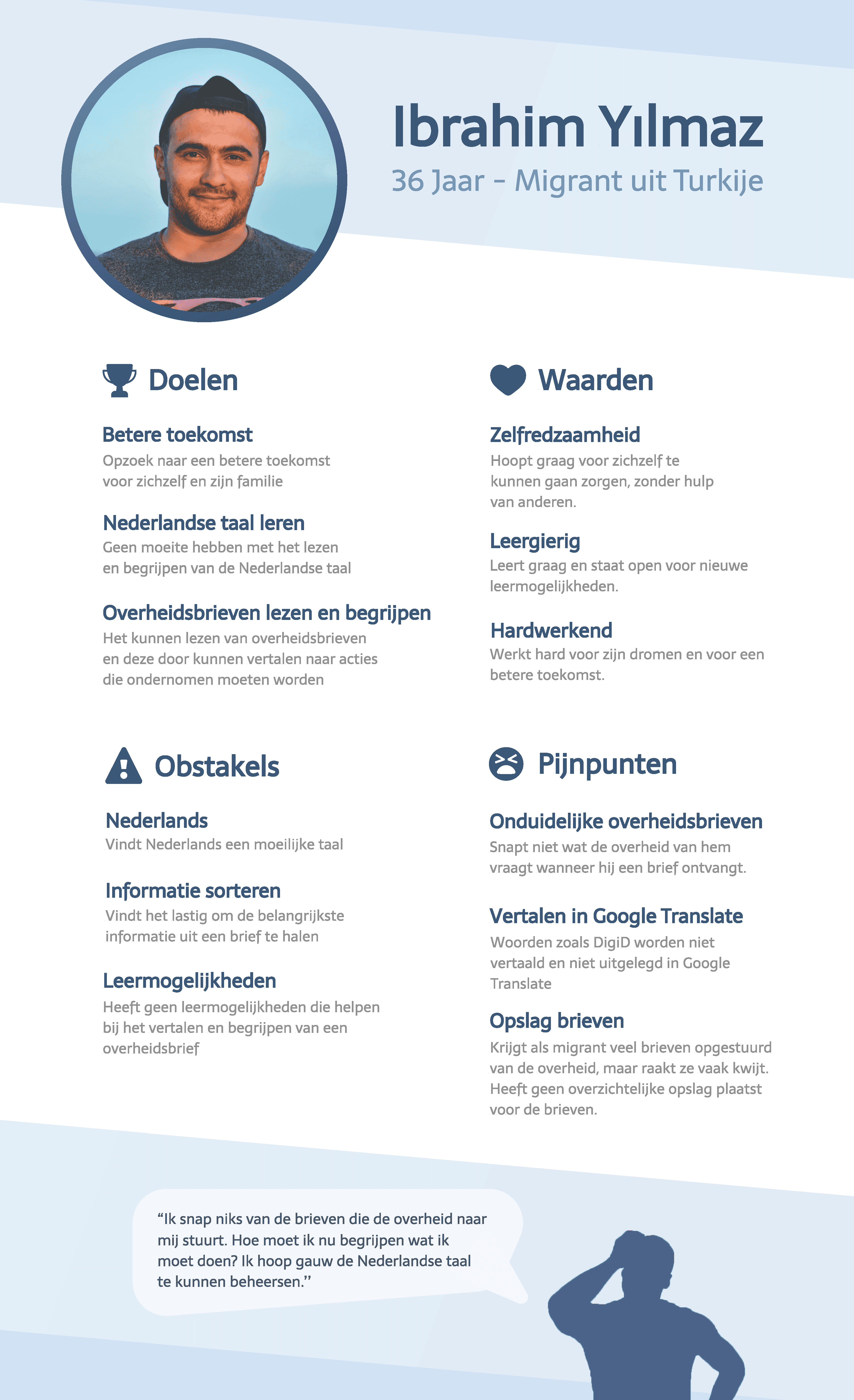 De ICTU gaf mij de opdracht om een digitaal ontwerpelement te creëren om de communicatie in overheidsbrieven te verbeteren, zodat migranten de informatie beter kunnen begrijpen. Ze willen er namelijk voor zorgen dat alle migranten in Nederland zelfstandig brieven en belangrijke informatie kunnen lezen.